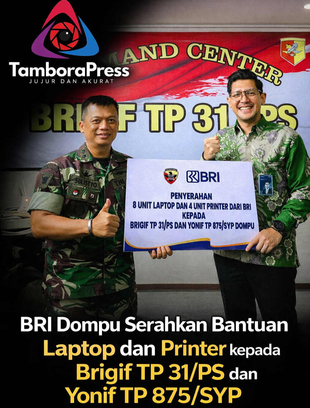Dompu_NTB, (tamborapress.com) – PT Bank Rakyat Indonesia (Persero) Tbk melalui BRI Branch Office Dompu terus memperkuat sinergi dengan Tentara Nasional…