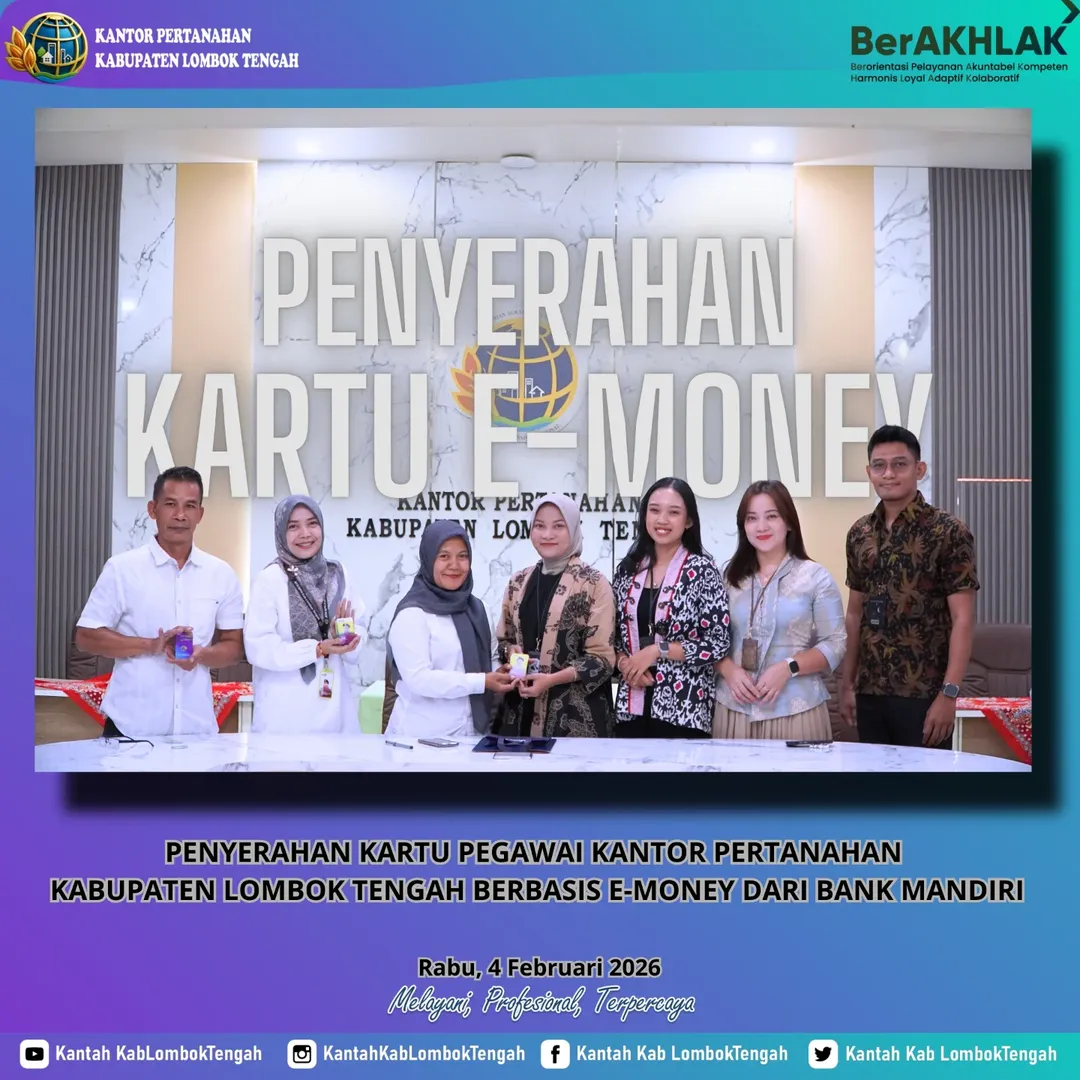 Lombok Tengah_NTB, (tamborapress.com)— Kantor Pertanahan Kabupaten Lombok Tengah, Nusa Tenggara Barat, resmi menerima Kartu Pegawai berbasis e-money hasil kerja sama…