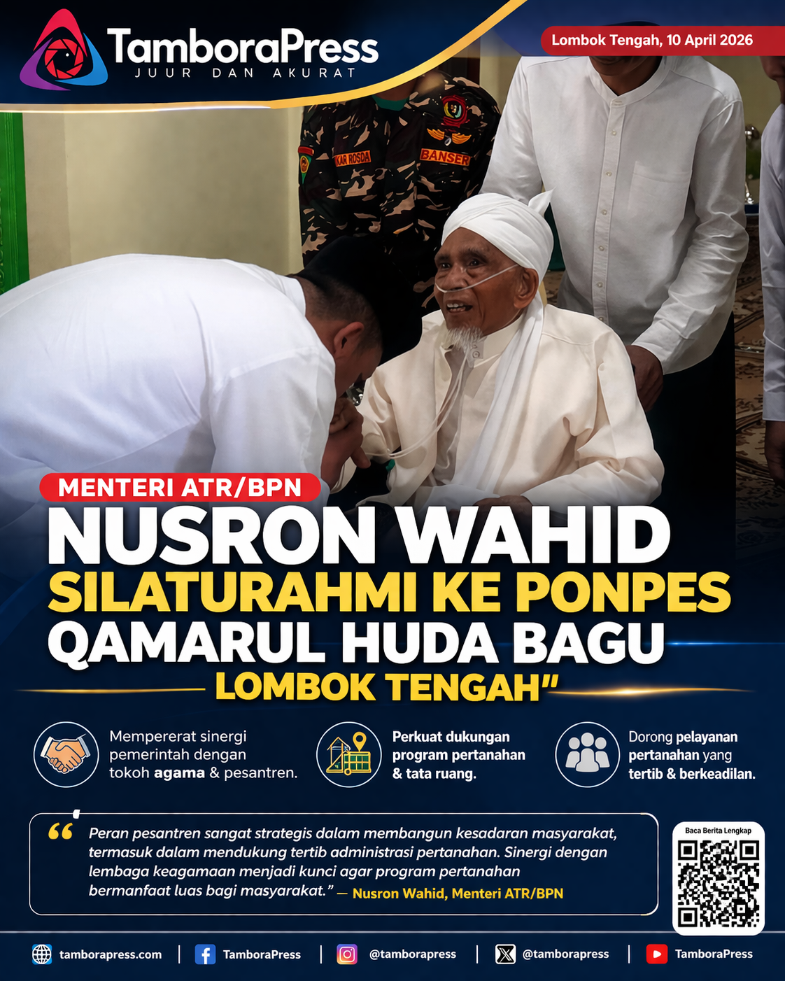 Lombok Tengah_NTB, (tamborapress.com) — Menteri Agraria dan Tata Ruang/Kepala Badan Pertanahan Nasional (ATR/BPN), Nusron Wahid, melakukan kunjungan silaturahmi ke Pondok…